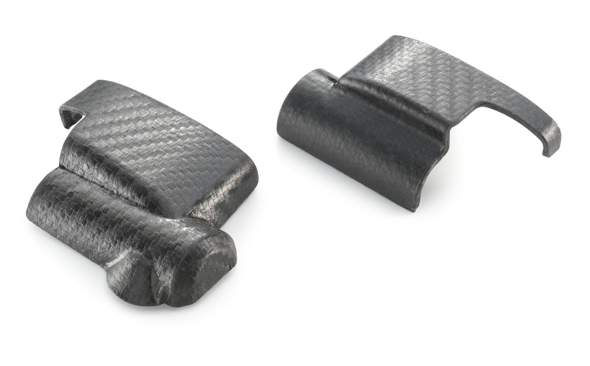 Osłona została starannie wykonana z włókna węglowego, co gwarantuje nie tylko wyjątkową trwałość, ale także minimalizację masy, co jest kluczowe dla zachowania doskonałej dynamiki jazdy. Materiał ten jest znany z wysokiej odporności na uszkodzenia, co czyni go idealnym wyborem dla wymagających warunków wyścigowych.
