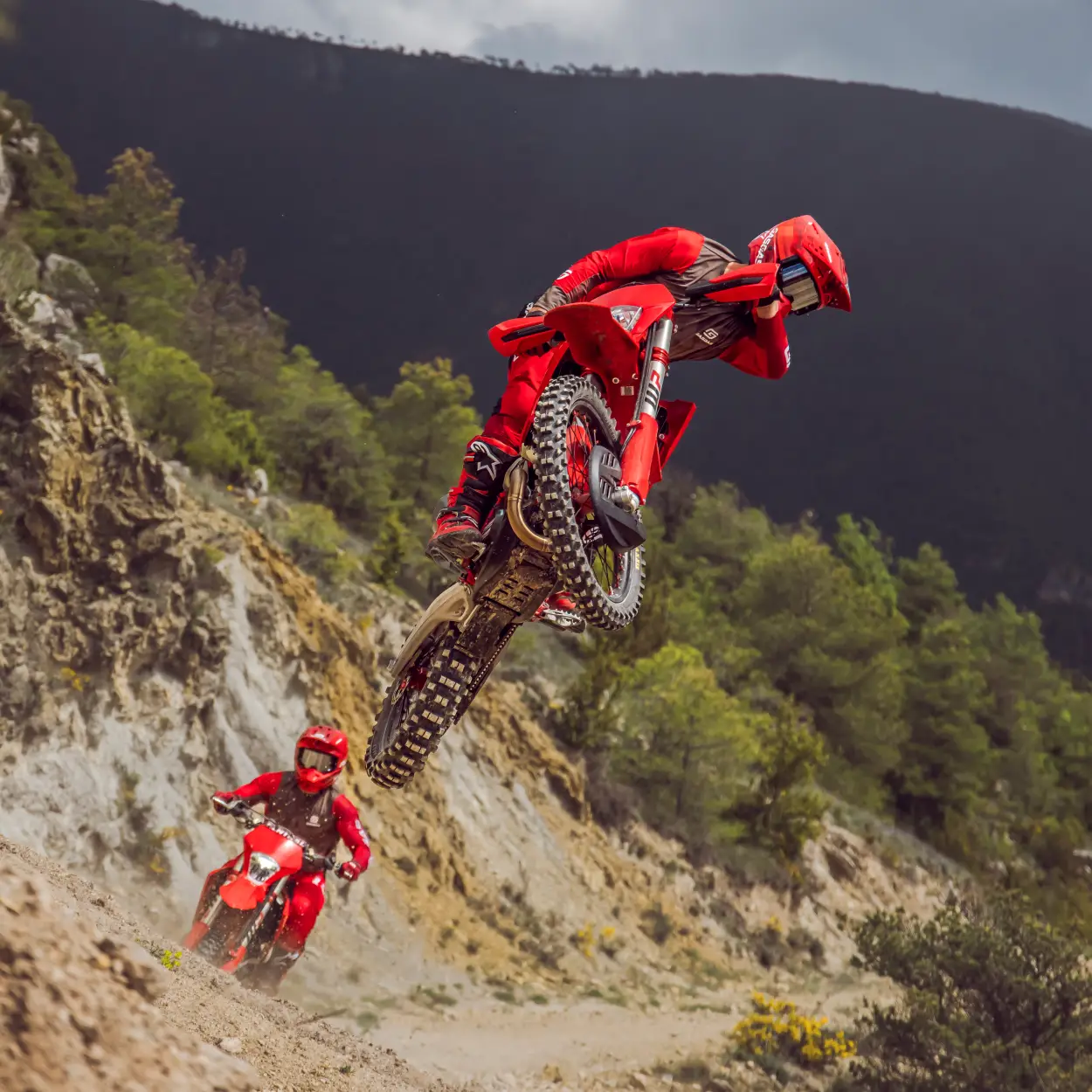 EC 450F 2025 został stworzony dla tych, którzy lubią jechać szybko, ale bez ciągłego mieszania biegami. Ogromny moment obrotowy dostępny od samego dołu sprawia, że motocykl świetnie radzi sobie przy niskich obrotach i wysokim przełożeniu – możesz spokojnie sunąć po trasie, utrzymując tempo bez zbędnego wysiłku. Przy tym wszystkim motocykl prowadzi się nadzwyczaj lekko i neutralnie – trudno uwierzyć, że pod bakiem pracuje tak duża jednostka napędowa. To zasługa inżynieryjnej precyzji: rama, zawieszenie i rozkład masy zostały dopracowane z myślą o tym, by EC 450F nie tylko dostarczał mocy, ale też dawał pewność w zakrętach, na zjazdach i w ciasnych, technicznych sekcjach.