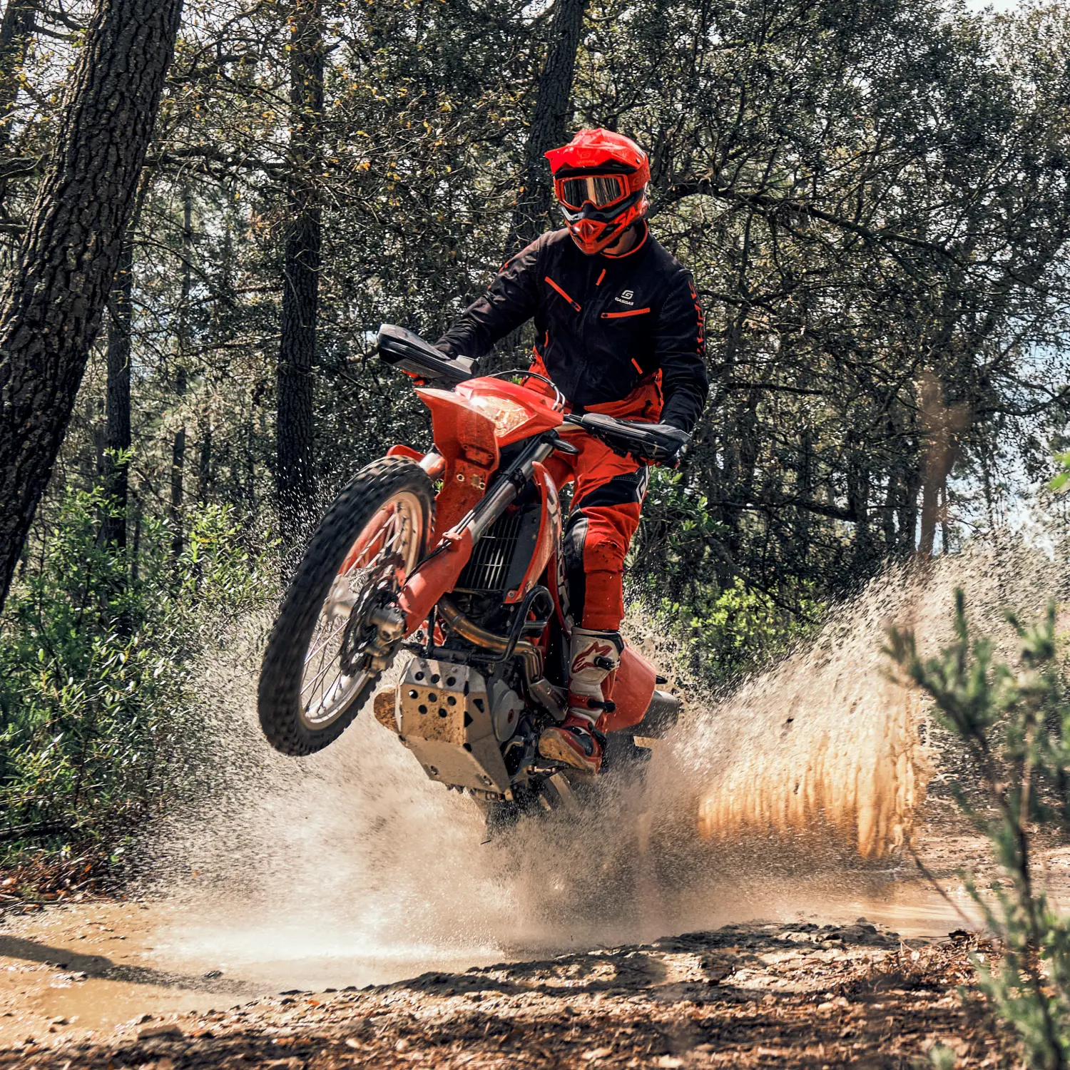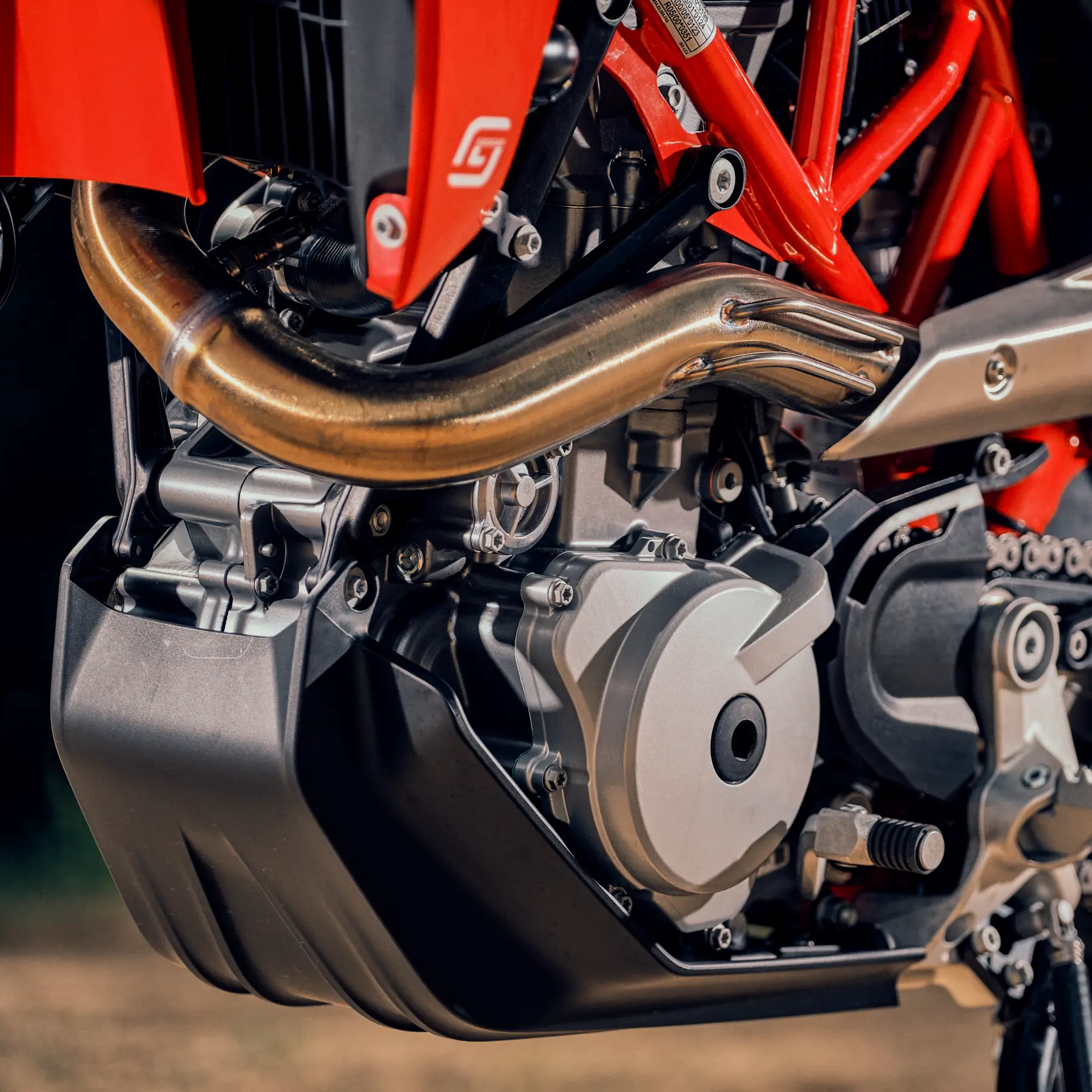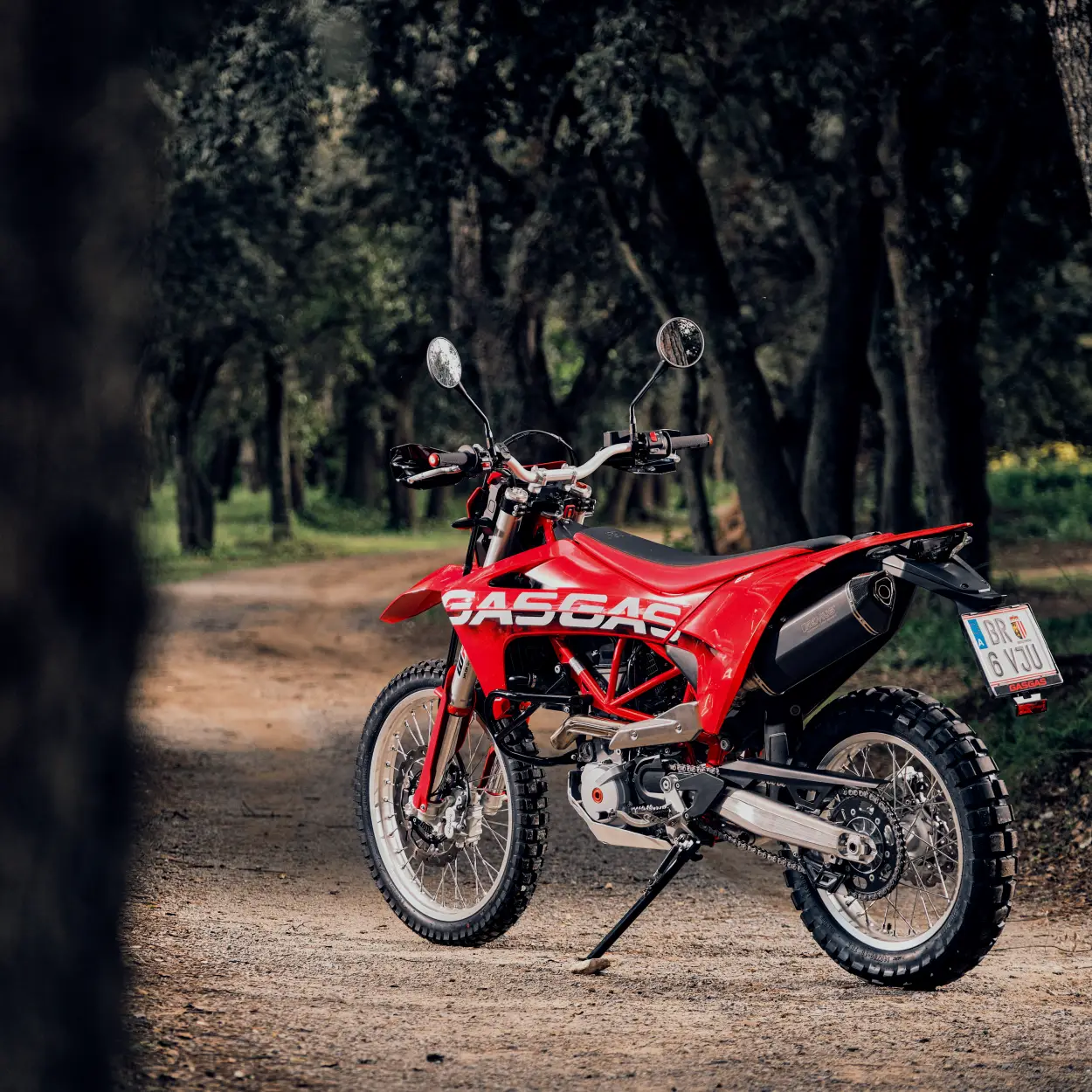 GASGAS ES 700 to sprzęt, który łączy dwa światy — rasowe enduro i sprzęt do dynamicznej jazdy po asfalcie. To pełnoprawny, duży dual-sport z genami off-roadowymi, stworzony z myślą o tych, którzy nie chcą ograniczać się do jednej nawierzchni. Dzięki lekkiemu jednocylindrowemu silnikowi o pojemności 692,7 cm³ i mocy 74 KM, ES 700 dostarcza liniowej, precyzyjnej mocy, którą kontrolujesz za pomocą nowoczesnego systemu Ride-by-Wire.
