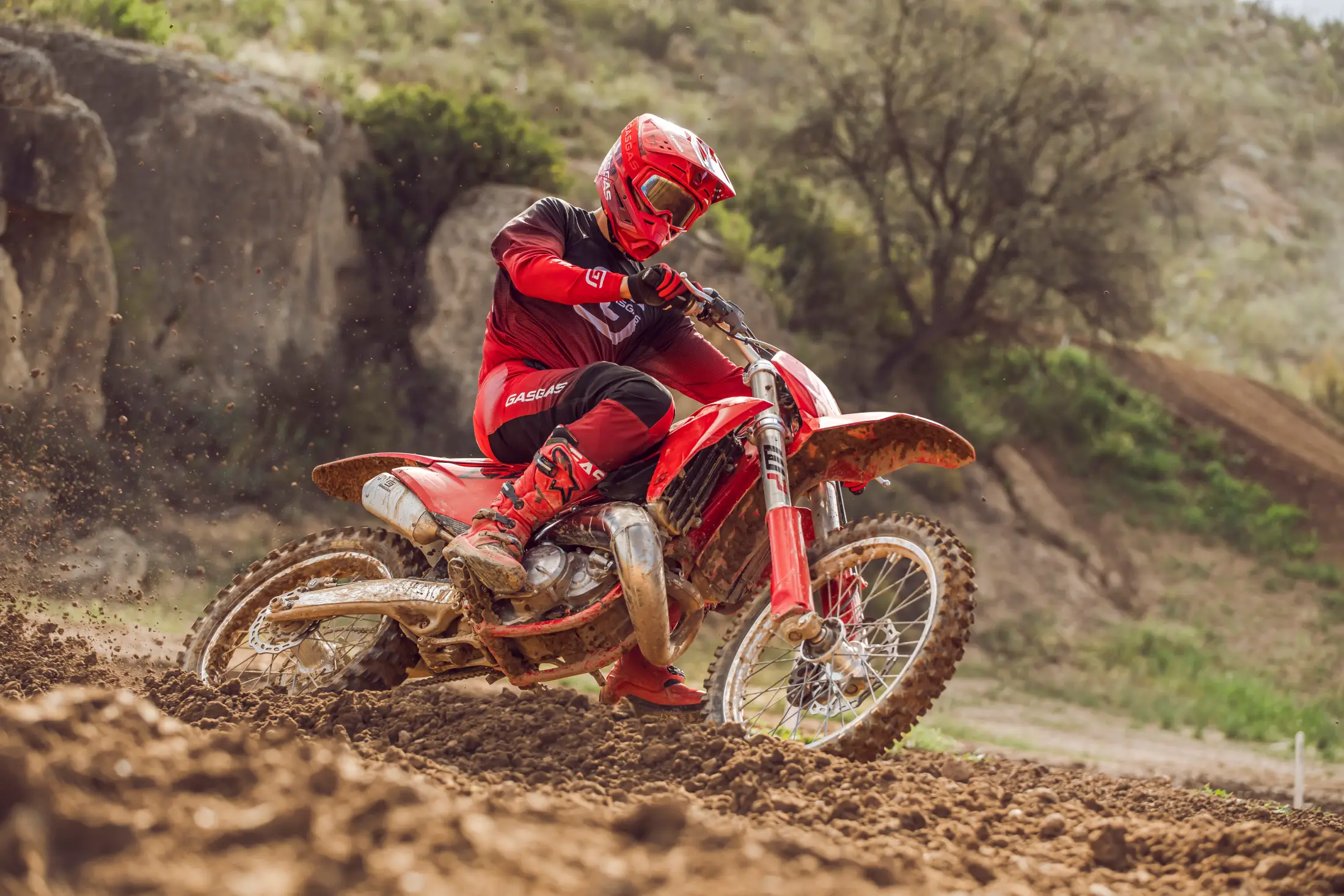 GASGAS MC 300 2025 to sprzęt bez kompromisów, stworzony dla tych, którzy chcą poczuć surową moc dwusuwowego big bore’a na torze motocrossowym. To nie jest motocykl dla każdego — wymaga zdecydowanej ręki i odwagi, bo oferuje brutalne przyspieszenie, fenomenalną reakcję na gaz i moc, którą trzeba umieć okiełznać. Nowoczesny wtrysk paliwa TBI zapewnia idealne dawkowanie mocy i pozwala silnikowi pracować czysto i przewidywalnie, ale charakter pozostaje dziki i nieujarzmiony. Co ważne adaptuje się do różnych warunków – bez potrzeby sięgania do gaźnika i bez nerwowego strojenia.