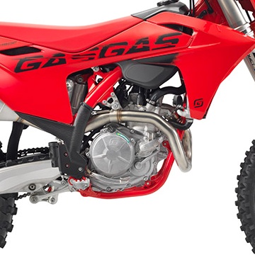 Na sezon 2025 motocykl zyskał odświeżoną ramę, nowe ustawienia zawieszenia WP XACT oraz szereg detali, które poprawiają nie tylko osiągi, ale i komfort jazdy. Przeprojektowany układ dolotowy, większe podnóżki i wzmocniony pedał hamulca tylnego pozwalają lepiej panować nad motocyklem i wycisnąć z niego maksimum na każdym torze. MC 350F wyróżnia się również niezmiennie efektowną, czerwoną stylistyką GASGAS, która nie tylko przyciąga wzrok, ale i znosi trudy jazdy dzięki trwałej technologii IML.
