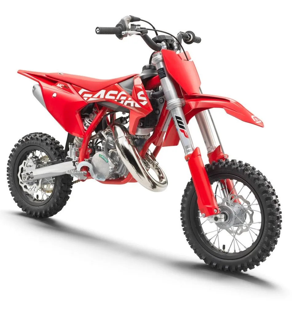 GASGAS MC 50 2024 to wyczynowy motocykl motocrossowy zaprojektowany dla najmłodszych riderów, którzy chcą rozpocząć swoją przygodę z wyścigami. Napędzany chłodzonym cieczą, jednocylindrowym, dwusuwowym silnikiem o pojemności 49,9 cm³, oferuje dynamiczne przyspieszenie, płynne oddawanie mocy i bezpośrednią reakcję na gaz – idealną do nauki techniki jazdy.